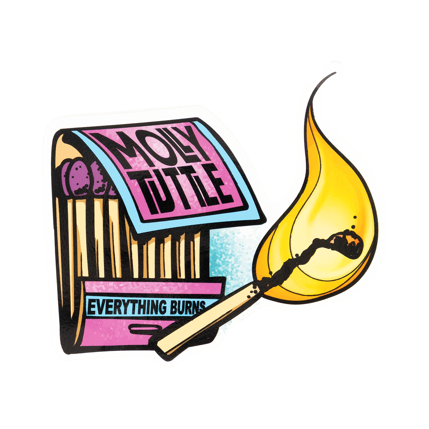 4" x 2" die cut sticker of a matchbook featuring Molly Tuttle's name and song title "Everything Burns" beside a lit match.